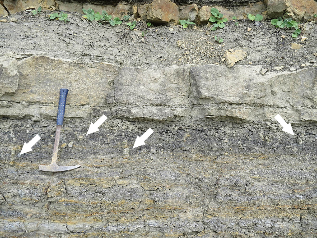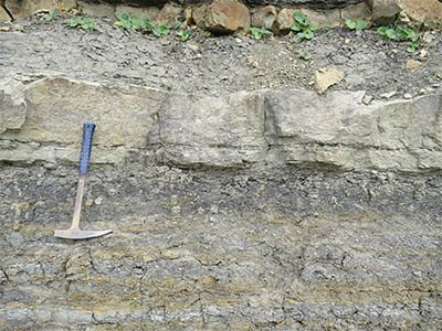 Flächiger Aufschluss des Grenzbonebeds |